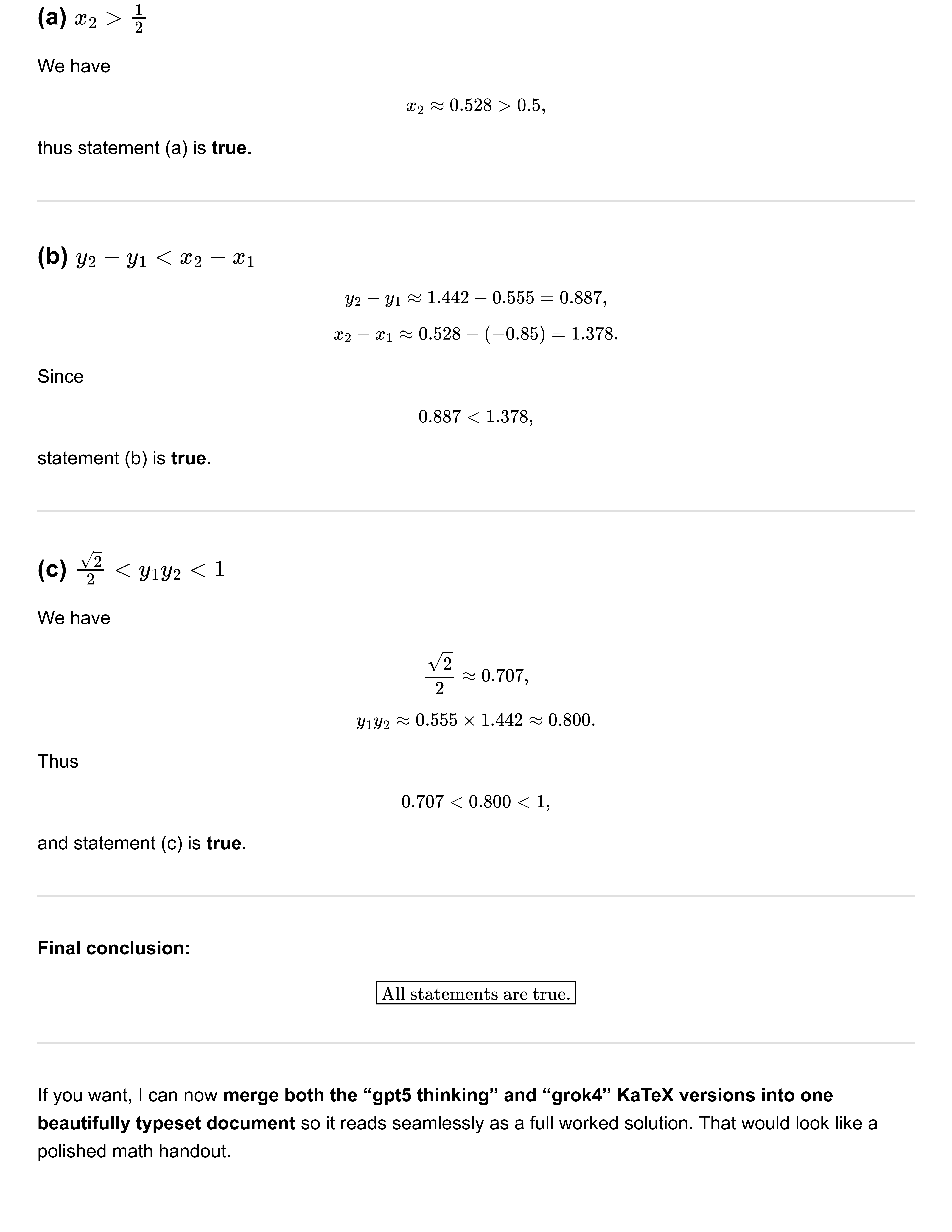 풀이를 비교해보시면 아시겠지만, grok4은 근사치를 이용해 문제를 해결하고 있습니다. 수학적 풀이가 아닌 공학적 풀이라고 할 수 있습니다.