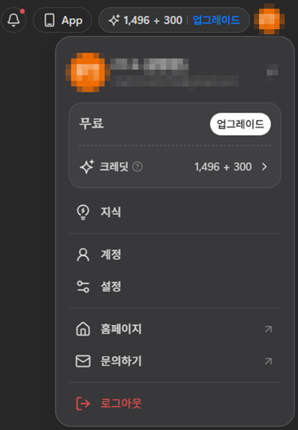 - 무료 제공: 신규 가입 시 1,500+300 크레딧 지급. 매일 1500크레딧은 소모하면 영구적으로 줄어들고, 300크레딧은 매일 추가로 제공합니다.