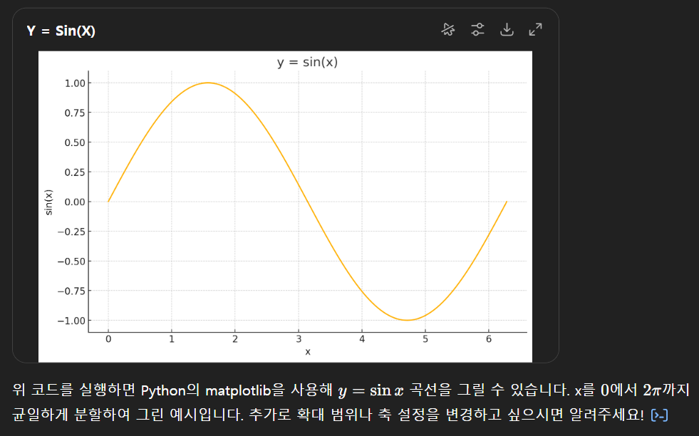 "파이썬을 이용해서 y=sinx를 그려줘"