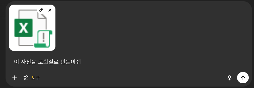 그래서 이렇게 '이 사진을 고화질로 만들어줘'라고 요청해 보았습니다.